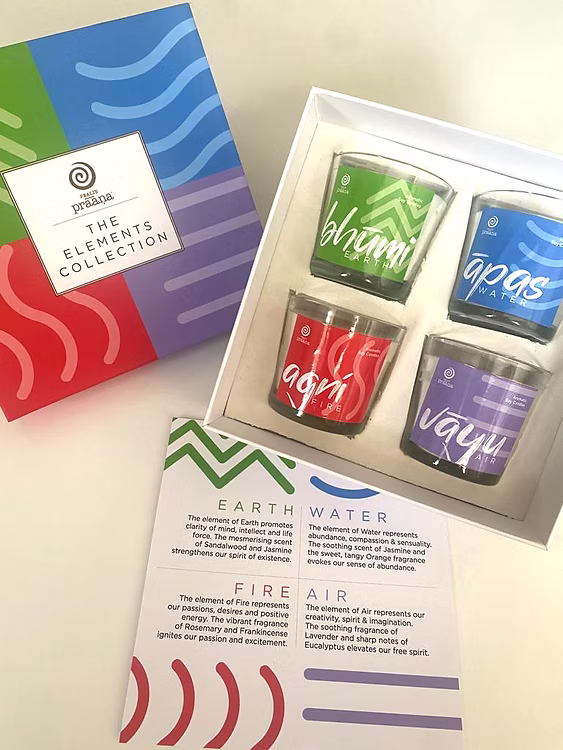 Bring balance and harmony to your life with the exotic set of aroma candles. Hand-poured and infused with essential oils, these are aligned to the 4 elements — Air, Water, Earth & Fire.